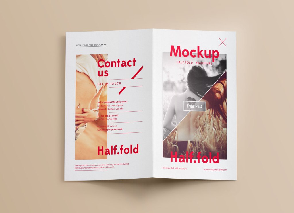 Click to get the latest buzzing content. Free Us Half Fold Brochure Mockup Mockups Design